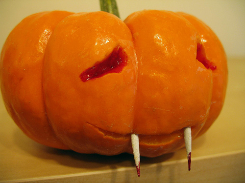 Probably not an actual vampire pumpkin, as it has teeth.