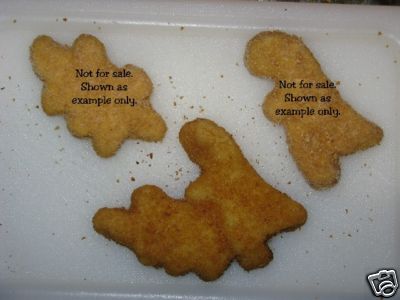 Up for auction is a one of a kind Chicken Nugget. I did not create this nugget formation. I simply opened the bag of frozen nuggets and it was already formed that way. What can I say other than the 2 Dinosaurs seem to be ….er….um….Fornicating. Which isn’t so unusual except for the fact that these are two entirely different breeds of dinosaurs and I don’t really think this is what Darwin meant by survival of the fittest.