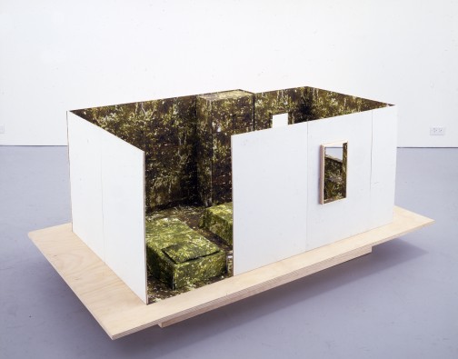 Mark Lewis had two video installations in this exhibition. In this one, the camera slowly zooms towards the building, which doesn’t have any windows. There are a few people on the second floor and we slowly discover what they’re doing – making a top spin. [Watch the thing here – it’s beautiful.]