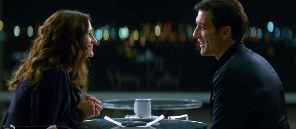 Ray (Clive Owen), a MI5 agent and Claire (Julia Roberts), a CIA agent meet at a party and sleep with each other. The next morning, Claire disappears after stealing information from Ray. Years later, they meet working on the same assignement – spying on Howard Tully’s (Tom Wilkinson) company for his competitor Richard Garsik (Paul Giamatti).