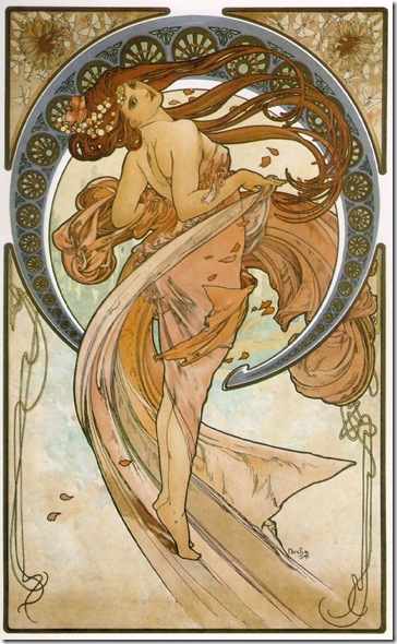 Mucha did some cycles, like the seasons and the four muses Dance, Music, Poetry and Painting. Here’s Dance: