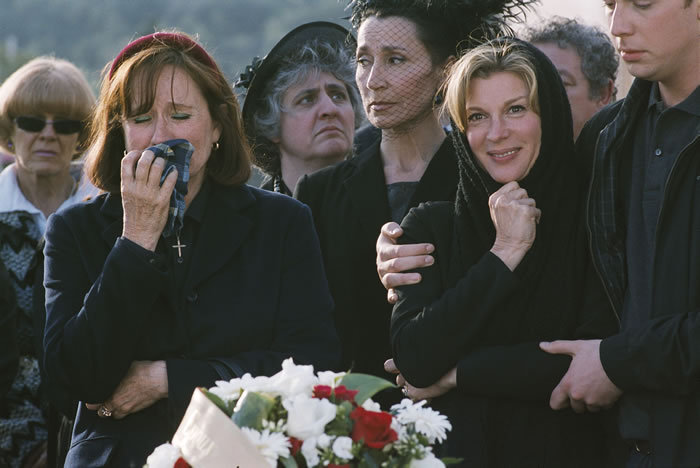 For years, Anne-Marie [Michèle Laroque] and Léo [Jacques Gamblin] had had an affair. But Anne-Marie never had the courage to leave her husband Gilbert [Wladimir Yordanoff]. Now, Léo gets a job offer in Asia somewhere [I don’t remember, I think it was Japan…]. They decide to go away together. But then Anne-Marie’s husband dies in a car accident and instead of being liberated by that, Gilbert’s whole family turns up to support the grieving widow and Anne-Marie is forced to pretend to grief.