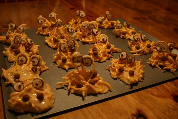 1) I found you the recipe of the Spaghetti Monster Cookies: http://www.evilmadscientist.com/article.php/edibleeyes