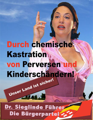 [Translation: Through chemical castration of perverts and pedophiles! Our country is safe!]
