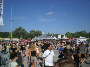 20 minutes later, we had reached the ticket booth. Deadra got her entrance-wrist-band. I got mine. B. didn’t get hers – she had a print-at-home ticket which could only be used at the main booth. Which was another 45 minutes walk. Since the stages were also up there, we had to take the walk anyway – but man, who makes a parking space an hour from where the action is happening?