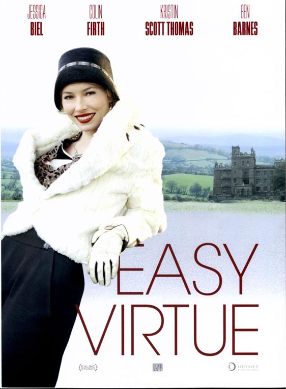 Easy Virtue is the adaptation of Noël Coward‘s play by Stephan Elliott. It stars Jessica Biel, Colin Firth, Kristin Scott Thomas and Ben Barnes. [And for IT Crowd fans: Katherine Parkinson.]