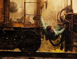 Anyway, apart from that crap, there were some good laughs, especially when the film tried to be all serious. [Says the TV announcer, “The AWVA train number 777, also called triple 7, …” Why, thank you for pointing that out – I don’t think I could have made that deduction otherwise.] And sometimes, it even got slightly surreal, for example when they show the approaching train (that is supposed to be freaking fast) and they choose the shot where you can see a beaver (or something like that) getting out of the way – and not even particularly fast.