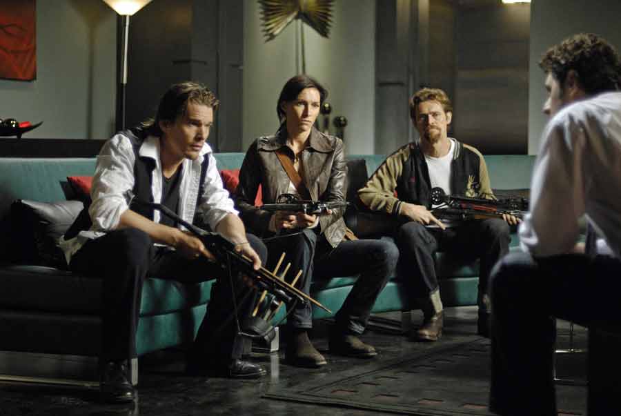 10 years into the future and vampires have pretty much taken over the world. Humans are a minority – and hunted, since the vampires are slowly running out of blood. Edward (Ethan Hawke) works at a research company headed by Charles Bromley (Sam Neill) and tries to develop synthetic blood, unsuccessfully so far. Edward is not only motivated by the fear that they’re all going to starve but also by compassion with the humans, wishing he could become one again himself. So when he stumbles upon human Audrey (Claudia Karvan) and a small resistance, he decides to help.