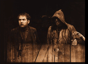The movie itself was very well done – Sjöström was quite the genius with double exposure and there was some pretty cool usage of color filters to make up for the black-and-whiteness. [When they were outside, there was a blue filter, inside yellow or brown, and in some dramatic scenes there was red.]