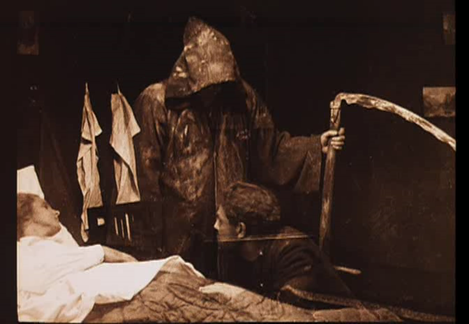 Edit (Astrid Holm) is a dilligent social worker in the Salvation Army. She was infected with tuberculosis a year earlier and is now dying from it. On her deathbed she asks to see David Holm (Victor Sjöström), the town’s worst and violent drunk she has been trying to reform. But David refuses to come: it’s New Year’s Eve, he’s out drinking with friends and telling them a story he heard: Whoever is the last one to die in the old year will become Death itself in the next year and will have to collect the souls. As fate will have it, this year it’s David’s turn: When the clock strikes midnight, he dies and meets his old friend Georges (Tore Svennberg) who was Death for the past year. Together they take a look at all of David’s errors and assholery in life.