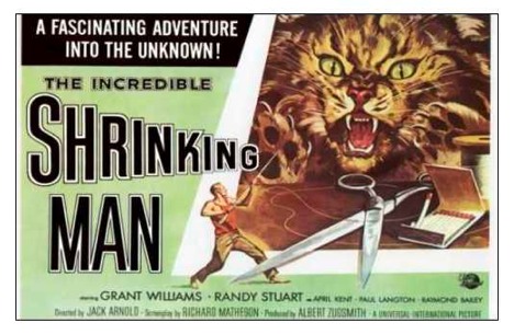After being exposed to a strange mist and some insecticide, Scott Carey (Grant Williams) slowly starts to shrink. As his size changes, so does his life. Though his wife Louise (Randy Stuart) is very supportive of him, Scott can’t really handle his transformation and grows more bitter with every inch he loses. After being attacked by his housecat, he gets stranded in the cellar, where he has to fight for survival.