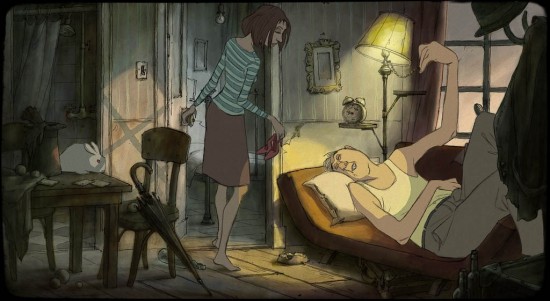 The movie makes do without dialogue. There is some talking, but it’s practically not understandable and basically only a stand-in because people do talk. But the movie does its speaking through its images and the wonderful soundtrack (also by Sylvain Chomet who apparently can do any- and everything). And with that course of action, it conjures up a very peculiar and very enjoyable atmosphere.