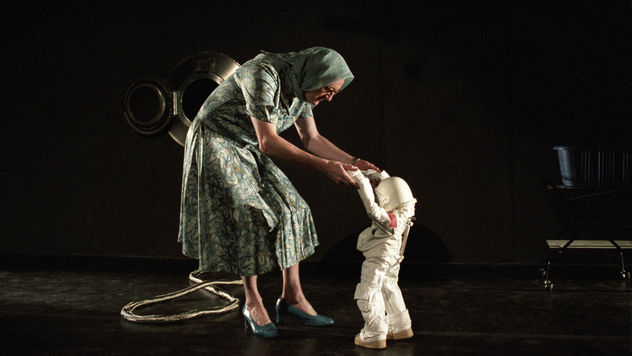 As usual, Lepage proves himself a master of the stage. His play is full with clever (multimedia) stage work: a mirror creates zero gravity, a washing machine turns into a space shuttle and with a few props and a black wall, we move through different appartments. Especially the zero gravity part impressed me a lot. So simple and yet so effective.