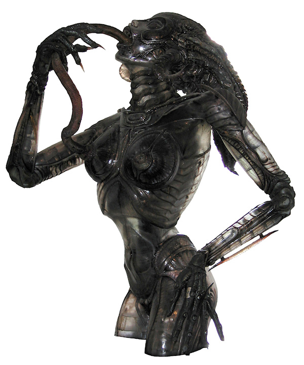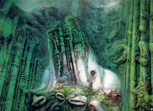 Giger’s work is fascinating – it’s intricate, it’s scary, at times it’s surprisingly tender and his relationship with women and the female body begs for a Freudian analysis (which probably wouldn’t work too much in his favor). His style is very distinct – one recognises Giger when one sees his work. I don’t like all of his pieces, some I think are pretty sexist, but he also has paintings and sculptures that have such a haunting beauty that it makes me a little sad.