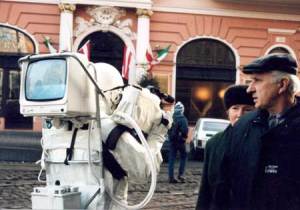 There was Pawel Althammer‘s Kosmonauta 1: a project where he dressed up in a self-built space suit and walked around the city, filming people’s reaction, which was pretty cool.