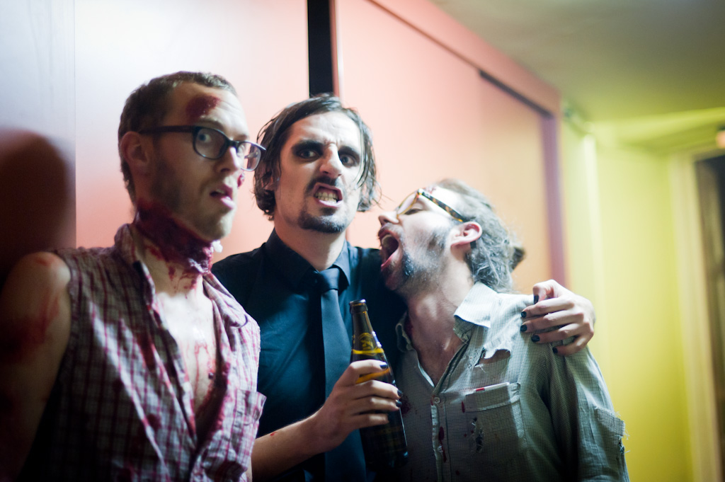 The way they went about the show was that Sir Tralala and Sheriff Melone were zombies belonging to the Bibliothekar. Through various experiments, the Bibiliothekar discovered that the zombies react very well to making their own music and now they’re on tour together, with him reading texts and the zombies singing.