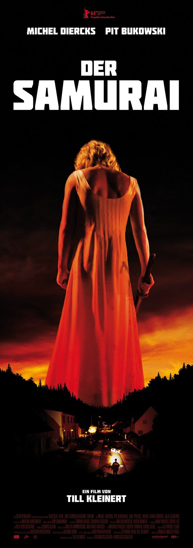 Jakob (Michel Diercks) is a police man in a small town. He lives with his grandmother (Ulrike Hanke-Haensch) and tries very hard to have everything just right. At the moment he is fascinated by a wolf that roams through the local woods and that he tries to catch and not just kill. But then he stumbles on a man (Pit Bukowski) in a wedding dress who just got a samurai sword delivered to him via Jakob. Katana in hand, that man starts to wreak havoc on the town and Jakob’s life.