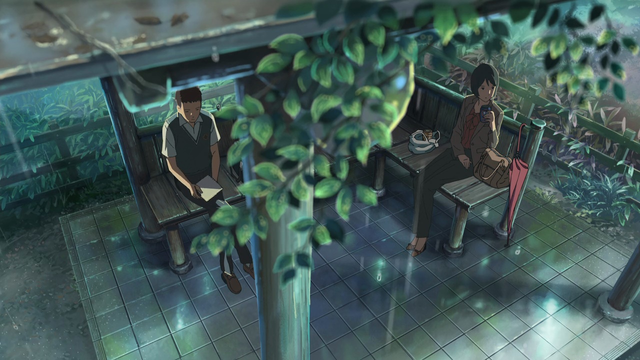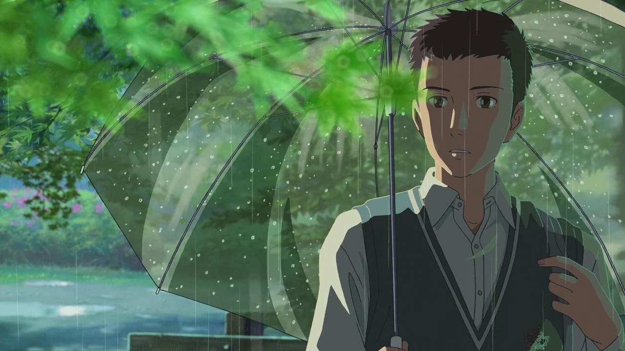 Takao (Miyu Irino) has a deal with himself: on rainy days he skips the first hour of school and goes to the park, sketches shoes and dreams of becoming a shoemaker. One day he finds Yukino (Kana Hanazawa) in his favorite spot, drinking beer and eating chocolate. He is immediately intrigued by the older woman. When they start to meet regularly whenever it rains, they slowly, carefully become something like friends.