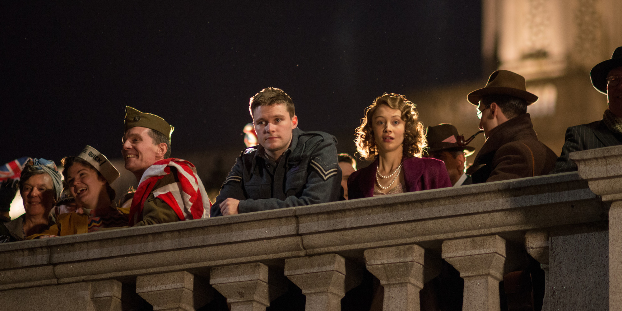 World War II is finally over and all of London is preparing for a huge party. Princess Elizabeth (Sarah Gadon) and Princess Margaret (Bel Powley) would like to join into the festivities, incognito. The King (Rupert Everett) and Queen (Emily Watson) are not really convinced that it’s a good idea, but then give in anyway. Chaperoned by Lieutenatns Pryce (Jack Laskey) and Burridge (Jack Gordon) they make their way into the city. Soon enough though, they not only escape their chaperones but also lose each other. Elizabeth recruits soldier Jack (Jack Reynor) to help her get Margaret home in one piece and before their curfew.