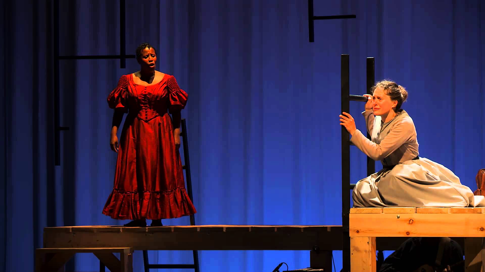 There are many things that were okay about the production although not really my cup of tea – the constant running, the minimalistic stage design, the overwrought phyiscal acting style, the talking in unison – but bundled together, it all became pretty insufferable and even managed to make the parts that I would have liked in another setting feel less than. That goes mostly for Melanie Marshall, who provides singing commentary every once in a while with a beautiful voice and nice song choices, but it never really becomes as poignant as it could have been. [Only through reading the cast list did I realize that she is supposed to portray Bertha Mason, a point that completely passed me by during the play.]