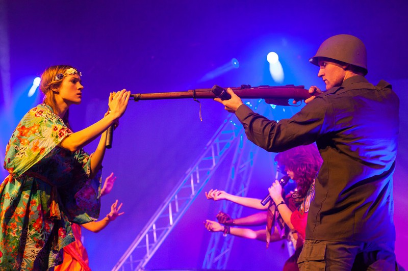 While the Vietnam war rages around them, the tribe – led by Berger (Brett Travis), Claude (Glen North) and Sheila (Jessica Joy Dyer) – prefers to spend their time getting high, enjoying their sexual freedom and generally refusing to be brought into this war. But refusal only goes so far – and when Claude receives his draft notice, he doesn’t know whether he will actually dare to burn it.