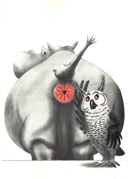 The owl has a pact with herself: she wants to learn as much new suff as she possibly can and so if her prey can tell her something new, she let’s them go. But she might be facing her biggest adventure yet when the hippo tells her about the leeches in her asshole.