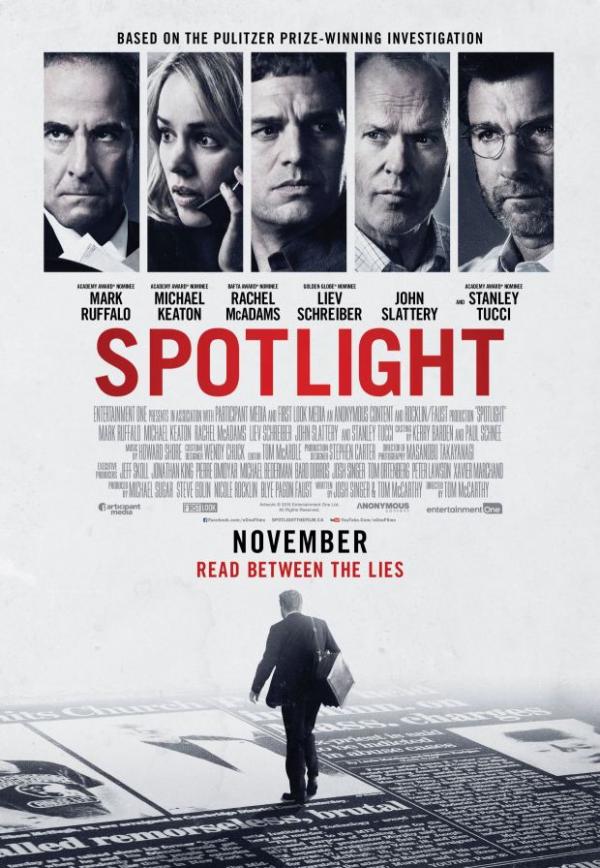 Cast: Mark Ruffalo, Michael Keaton, Rachel McAdams, Liev Schreiber, John Slattery, Brian d’Arcy James, Stanley Tucci, Jamey Sheridan, Billy Crudup