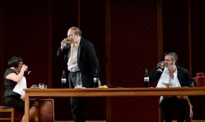 affaereruedelourcine1But what annoyed me more – and that’s my own personal hang-up, your mileage may vary – was that both Ofczarek and Maertens play older and drunk the entire play through. Meaning that their enunciation is consistently slurred and comes with that creaking quality that actors usually give their old-people-voices. And that was simply tiring for me to listen to and got on my nerves pretty quickly.