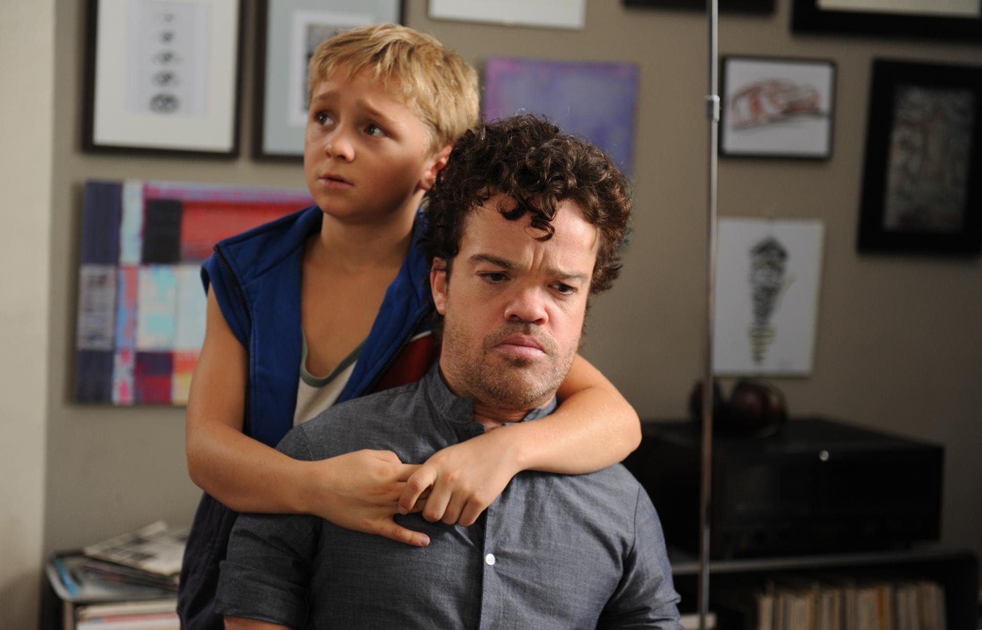 But even better than the treatment of the foster care system was the way they dealt with Tom’s short stature. Of course, it’s an issue for Michi who has imagined this idolized version of a superhuman as his father, but it’s only one of many issues the two have to work out. And the film shows with a lot of matter-of-fact-ness both the discrimination and challenges Tom faces that bigger people don’t face, and the many ways his life is just as any other. And they even manage to show that there absolute advantages as well for Michi to have a father who is the same size as him: like having a perfectly sized kitchen where nothing is out of reach or being able to borrow his cool leather jacket.