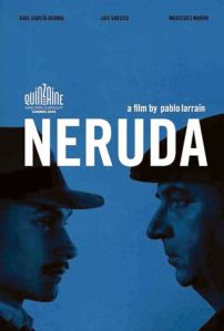 The film plays a lot with narrative structures (I don’t know if that’s something that Neruda also did in his poetry, but I would like it if it was the case): it keeps to the perspective of Neruda himself but it is narrated by Peluchonneau, which is a double-perspective-balance that’s pretty interesting. And the ending is cleverly metafictional as well.
