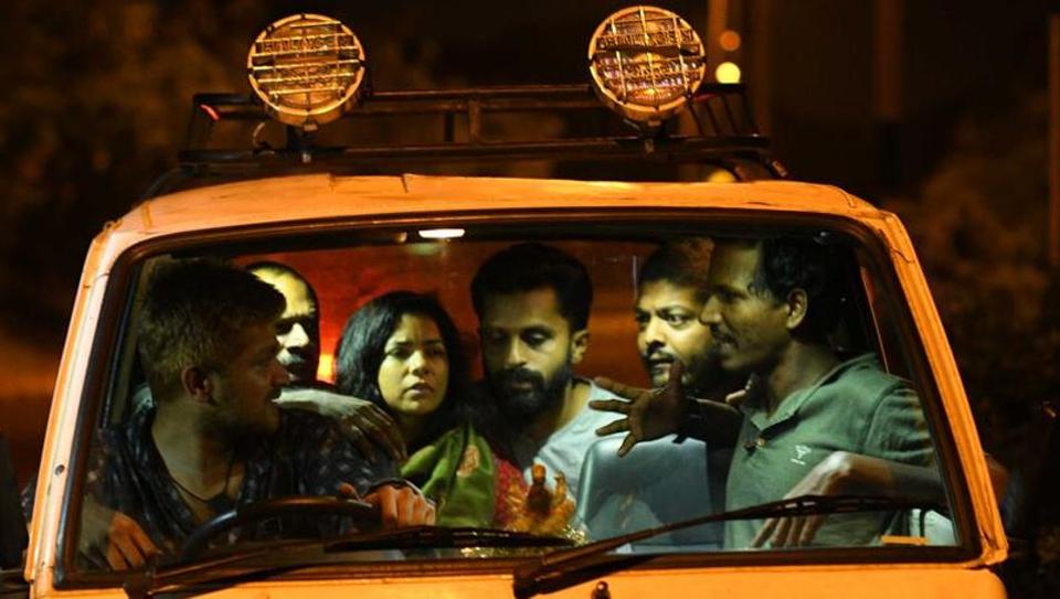 Kabeer (Kannan Nayar) and his girlfriend Durga (Rajshri Deshpande) are in desperate need of a ride: they desperately need to catch their train. As they make their way through the night in Kerala, it becomes clear that they are running away: Kabeer is Muslim, Durga – who comes from the North and only speaks Hindi – a Hindu and their relationship is bound to cause offense. They are picked up by four rough-looking guys in a van and what seems a favor at first, quickly becomes a nightmare for Kabeer and Durga.