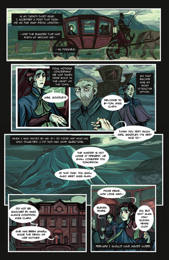 Miss Clara takes on a post as a governess in a remote location, but circumstances are much different from what she expected.