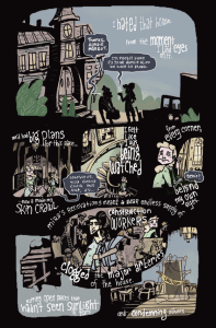 Damn, this story was creepy and sad and queer and lovely and it made me FEEL THINGS. And while I didn’t love the way the characters were drawn (although I loved it more with every page), the lettering was truly astounding.