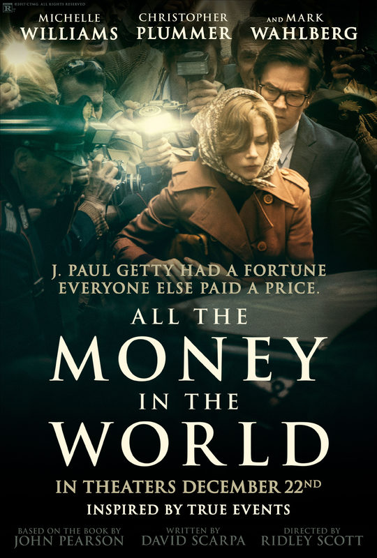 Cast: Michelle Williams, Christopher Plummer, Mark Wahlberg, Romain Duris, Timothy Hutton, Charlie Plummer