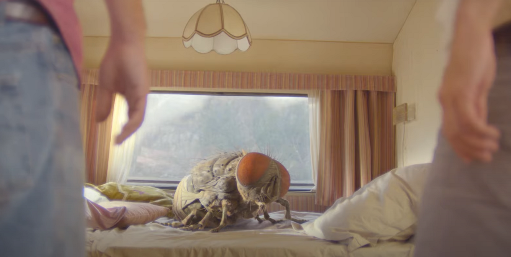 Manu (Grégoire Ludig) is currently homeless and desperate for cash, so when he gets recruited to transport a mysterious suitcase from one house to the next, he accepts. He steals a car and asks his best friend Jean-Gab (David Marsais) along for the ride. When they check the trunk, though, they find a dog-sized fly trapped there. Jean-Gab is certain, if they manage to train the fly, all of their problems are over. But that might be easier said than done.