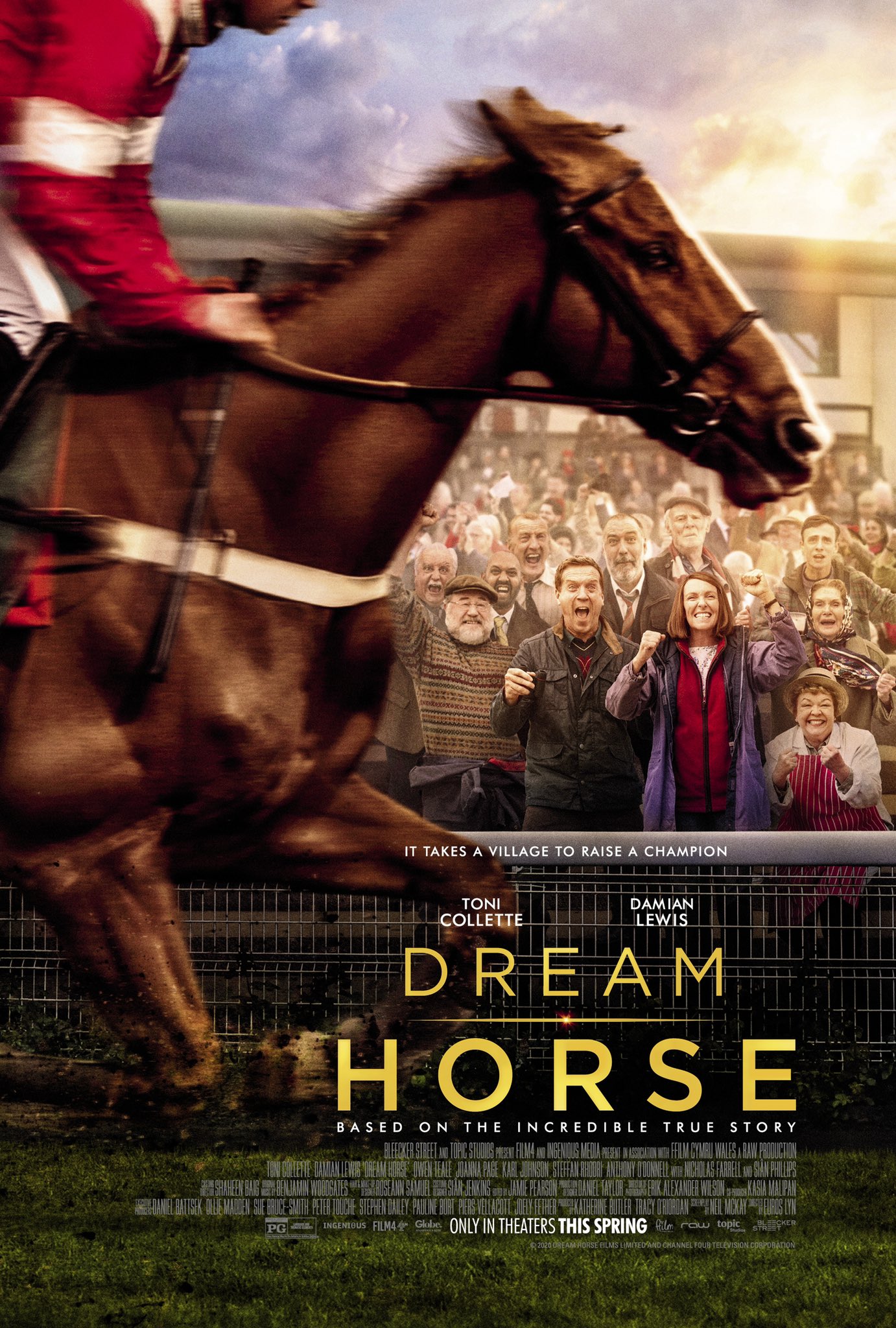 Jan (Toni Collette) works two jobs – as a supermarket cashier and as a bartender – and barely keeps herself and her husband Brian (Owen Teale), a former vet who can’t work anymore, afloat. Her life seems nothing but work with no perspective of that changing. When she hears a bar patron, bookkeeper Howard (Damian Lewis), talking about being part of a syndicate – a group of people who owned a race horse together – she gets an idea. She will raise a race horse herself – with the help of the people in the village.